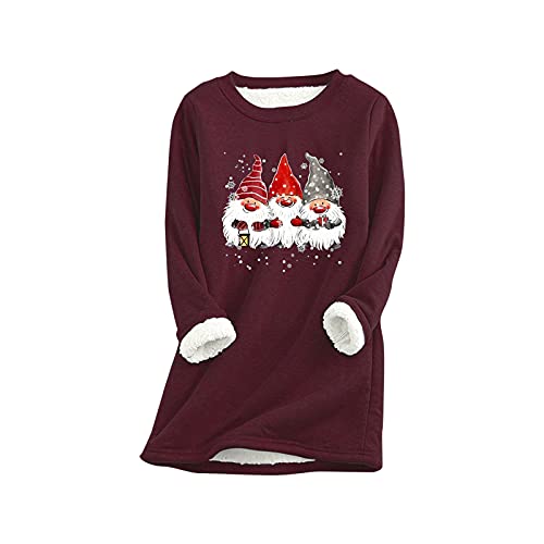 Pull chaud pour femme en polaire doublée - Polaire peluche thermique - Pull d'hiver doublé pour sweat-shirt Teddy sans capuche en coton épais - Grande taille - Couleur unie - Doux et confortable