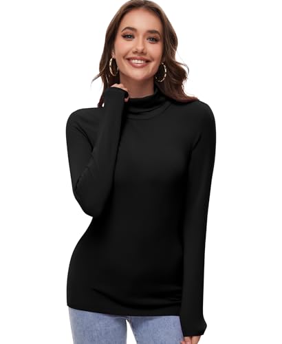 YARRCO Haut Thermique Femme Manche Longue Col roulé Casual sous-vêtements Thermiques Chaud & Léger Ski sous Pull t Shirt Hiver Doux et Confortable (Noir,M)