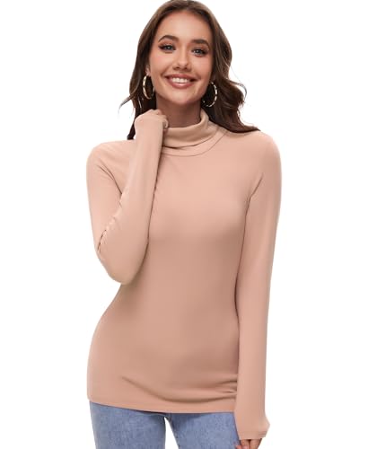 YARRCO Haut Thermique Femme Manche Longue Col roulé Casual sous-vêtements Thermiques Chaud & Léger Ski sous Pull t Shirt Hiver Doux et Confortable (Beige,L)