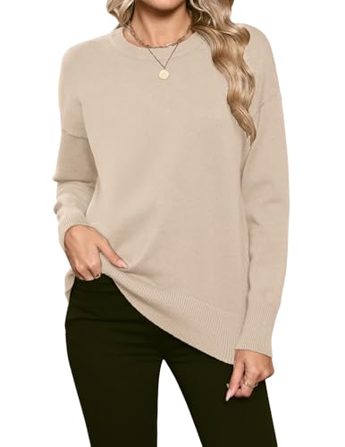 Hotouch Pull en Maille Fine pour Femme Pull Doux et Chaud à Manches Longues et Col Rond Pull-Over Automne Hiver Beige M