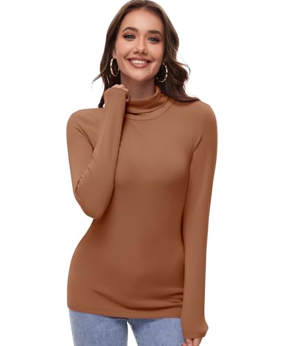YARRCO Haut Thermique Femme Manche Longue Col roulé Casual sous-vêtements Thermiques Chaud & Léger Ski sous Pull t Shirt Hiver Doux et Confortable (Brun,M)