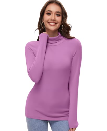 YARRCO Haut Thermique Femme Manche Longue Col roulé Casual sous-vêtements Thermiques Chaud & Léger Ski sous Pull t Shirt Hiver Doux et Confortable (Violet,M)