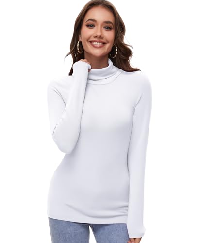YARRCO Haut Thermique Femme Manche Longue Col roulé Casual sous-vêtements Thermiques Chaud & Léger Ski sous Pull t Shirt Hiver Doux et Confortable (Blanc,M)