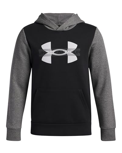 Under Armour Rival FLC Colorblock Graphique Sweat à Capuche Garçons, Sweat à Capuche Ultra-Doux en Coton mélangé, Pull garçon avec Poche Kangourou, Black/Castlerock Light Heather/White, YMD