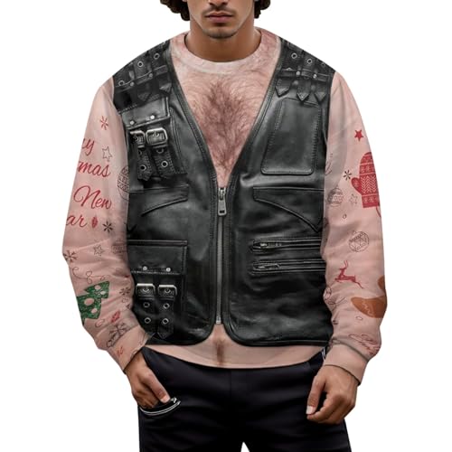 Sweat Moche Noel Homme, Pull De Noel Drole, Sweat Pull Motifs De Père Ugly Jumper Tops À Manches Longues Sweat-Shirt Xmas 3D Impression Sportwear Col Rond Leger Casual T-Shirt Créatif De Mode Funny
