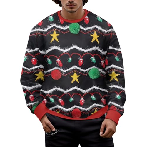 sutelang lurryly Pull De Noel Homme,Sweat De Noel Homme Manches Longues Et Col Rond Pull Moche De Noel Drôle 3D Imprimé Créatif de Mode Funny Sweatshirts Jumper Ugly Christmas Sweater Pas Cher