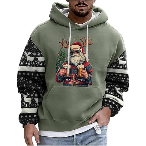 Pull de Noel Homme Manches Longues, Sweat à Capuche Noël Rigolo-Sweatshirts Homme Grande Taille Automne et Hiver avec Cordon Poches Christmas Confortable Chaud Décontractés Xmas Moche Print Sweats