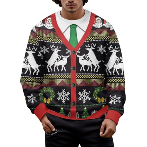 Générique Pull De Noël Moche Homme, Pull Renne Noel À Manches Longues Sweatshirt Moche De Noël Élément De Noël 3D Imprimé Blouse Sport Top Sweatshirt