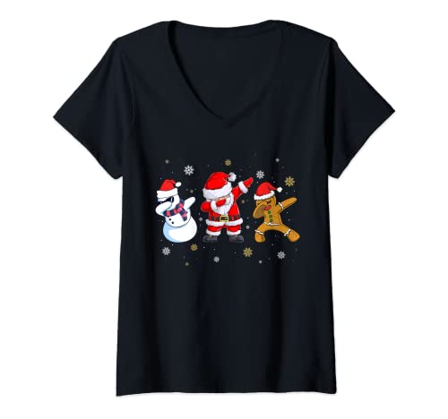 Femme Pull de Noel Homme Dab Pere Noel Hip-Hop Cool T-Shirt avec Col en V