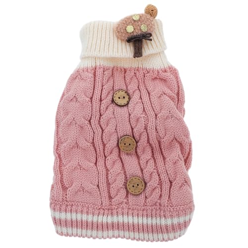 DOITOOL Pull pour Chiot Taille M Pull en Maille Torsadée Rose Boutons Vêtements Chauds pour Chiens et Chats D’Environ 7-8 Kg Confortable et Respirant Automne-Hiver Couleur Aléatoire
