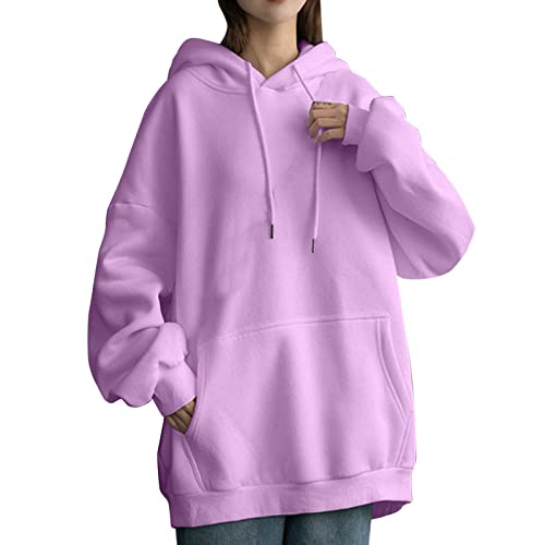Sweat Oversize Femme avec Cordon, Hoodie Femme Coréen-Sweatshirts Femme Manche Longue Couleur Unie avec Poches Fashion Pullover Streetwear écontractés Baggy Chic Pull Sweat Shirt Grande Taille Automne