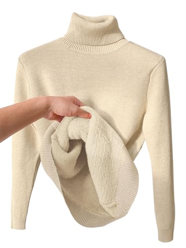 seiveini Pull Femme à col Roulé Haut Thermique Femme Manche Longue Pull en Tricote Femme Hiver Chaude Maillot de Corps Femme Basique Pull Slim Fit sous-Vêtement en Peluche Mode A Beige XL