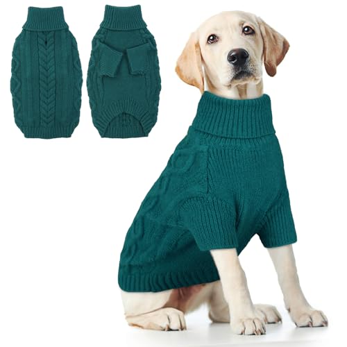 Hjumarayan Pull de Noel Chien Grande Taille, Pull Over pour Gros Chien Simple Elégant, Pull-Overs Chaud avec Manches, Epais Sweat Hiver pour Labrador Femelle, Vert XL