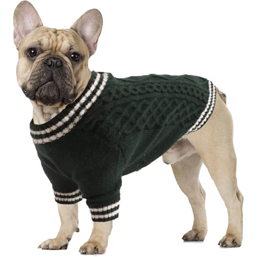 Hjumarayan Pull Noel Chien Moyen, Pull pour Chien Simple Elégant, Pull-Overs Chaud pour Chiens avec Manches, Epais Sweat Hiver pour Bouledogue Beagle, Vert L