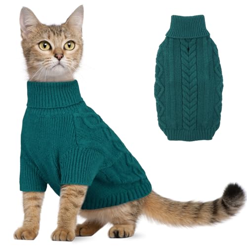 Hjumarayan Pull Noel pour Chat, Vetement Chat Pull pour Chien Petite Taille, Simple Elégant Pull-Overs à Col Montant pour Chiens, Hiver Sweat Chau avec Manches, Vert S