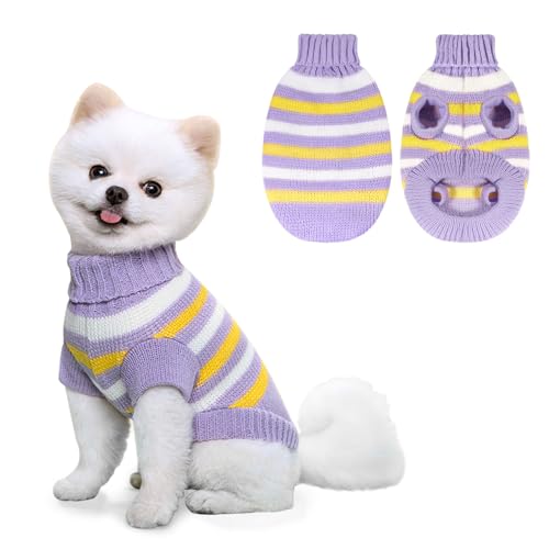 Lyneun Pull Noel Chien, Pull Tricoté Chien Petite Taille, Xmas Pull pour Chien Chat, Pull de Noël pour Animaux de Compagnie, Pull Motif de Noël pour Petits Chiens et Chats (Violet, M)
