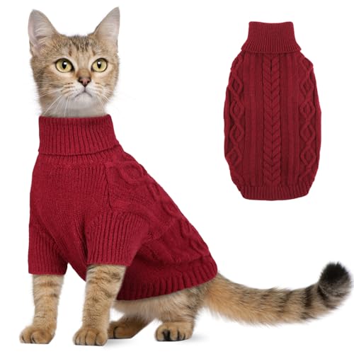 Hjumarayan Pull Noel pour Chat, Vetement Chat Pull pour Chien Petite Taille, Simple Elégant Pull-Overs à Col Montant pour Chiens, Hiver Sweat Chau avec Manches, Rouge S