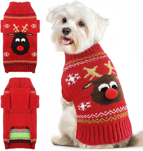 XIMEY Pull de Noel pour Chat, Vetement Deguisement pour Chat Noel, Textiles et Accessoires pour Chiens, Vetement pour Chien, Vetement Chien Petite Taille, Pull Noel Chien (A, L)