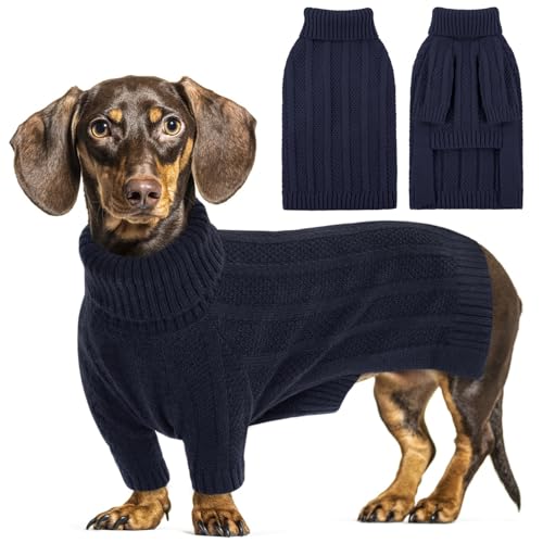 Queenmore Pull Chihuahua, Col Roulé Manches Longues, Pull Noel pour Yorkshire, Caniche, Cockapoo, Intérieur/Extérieur (Marine, S)