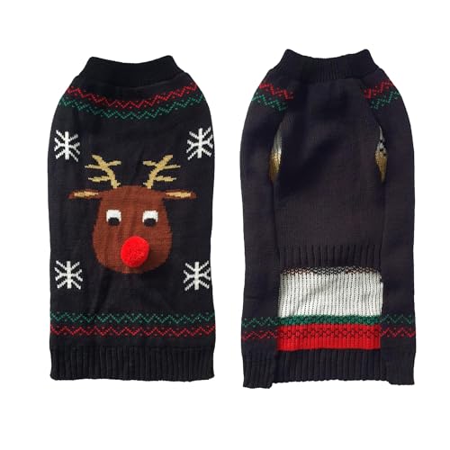 Love Story, Pull de Noel à Enfiler Acrylique Taille Unique 45 cm Modèle Renne Noir Rouge Vert