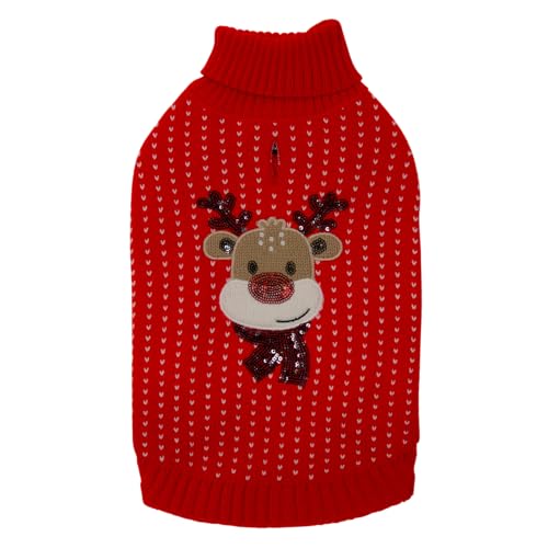 JACK AND VANILLA, Pull de noël pour Chien avec Motif Renne, avec col roulé, Idéal pour Les fêtes, Lavable en Machine, Ajustement Parfait, S, Couleur Rouge, Modèle 5Th Avenue Dogwalk