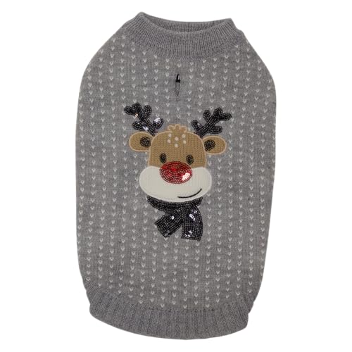 JACK AND VANILLA, Pull de noël pour Chien avec Motif Renne, avec col roulé, Idéal pour Les fêtes, Lavable en Machine, Ajustement Parfait, XS, Couleur Gris, Modèle 5Th Avenue Dogwalk