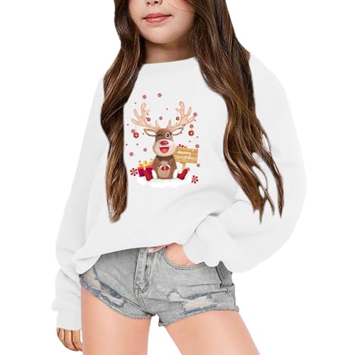 Générique Pull Enfant Fille - Rennes De Noël Pullover Enfant Épais T-Shirt À Manches Longues Tops avec Imprimé Noël Confortable Père Noël Sweatshirt Enfant Sportswear Enfant