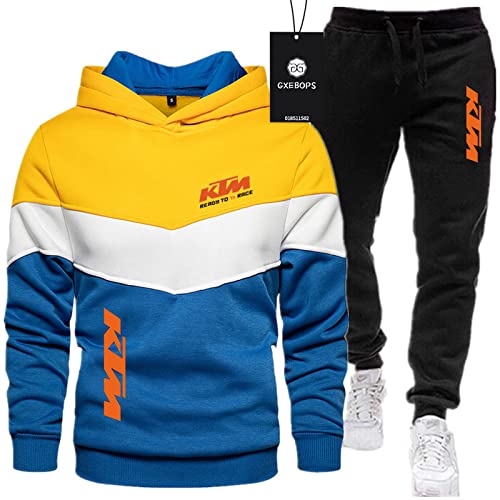 SPONYBORTY Combinaison de Sport pour Homme Pull + Pantalon Deux pièces Coutures tricolores Plus épaississement en Velours Combinaison de Jogging Sweat à Capuche Sportswear Football/D/XL
