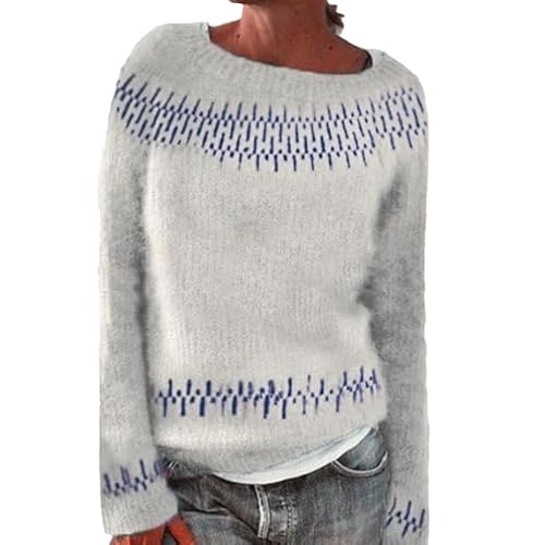 Pull Femme Noel, Pull Norvégien Gris Femme en Laine Grande Taille Sweatshirts Sweat sans Capuche Hiver Chaud Pulls Cachemire Chic Et Elegant Manches Longues Islandais Polaire Tricoté