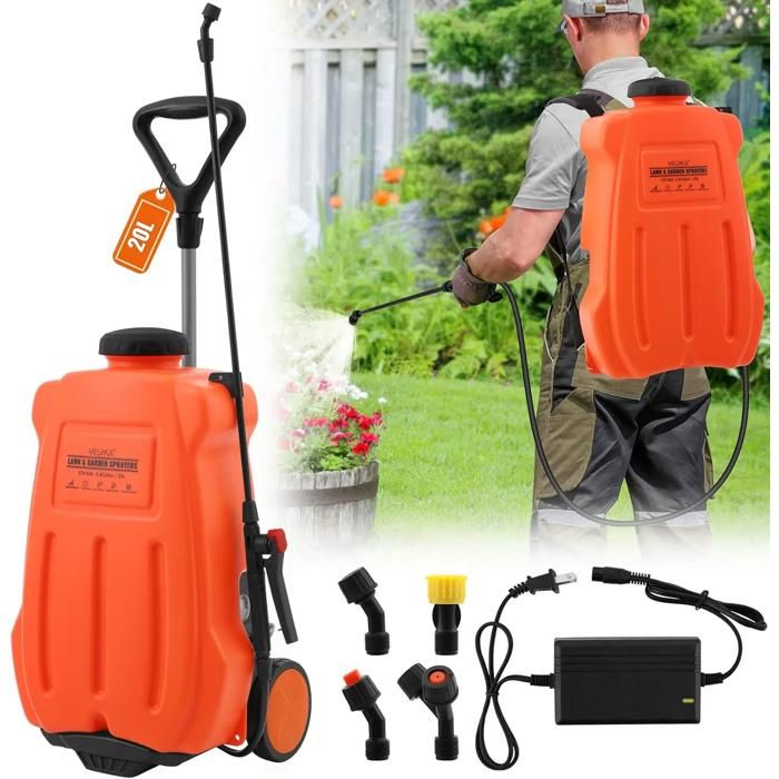 Pulvérisateur Électrique 20L Chariot à roulettes Réglable 0-65 PSI Pulvérisateur Électrique Toiture Longue Portée à Batterie