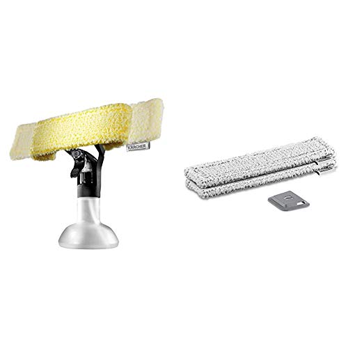 Kärcher 2.633-129.0 Pulvérisateur 2 en 1 + grattoir accessoire & Kärcher WV Housse de Vadrouille en Microfibre pour l'intérieur, 2 Pièces, Adaptée aux Vaporisateurs WV avec Velcro