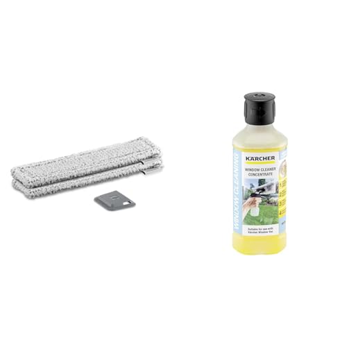 Kärcher Bonnettes microfibre pour vitres extérieures + grattoir accessoires pour nettoyeurs de vitres, compatible avec le pulvérisateur référence & Kärcher Nettoyant vitres concentré (500 ml)