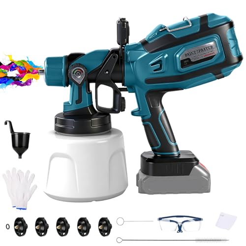 Pulvérisateur de Peinture électrique sans Fil Compatible avec Batterie Makita 18 V, 4 Buses, 3 Modes de pulvérisation, récipient de 1000 ML, pour Murs, Meubles, Peinture