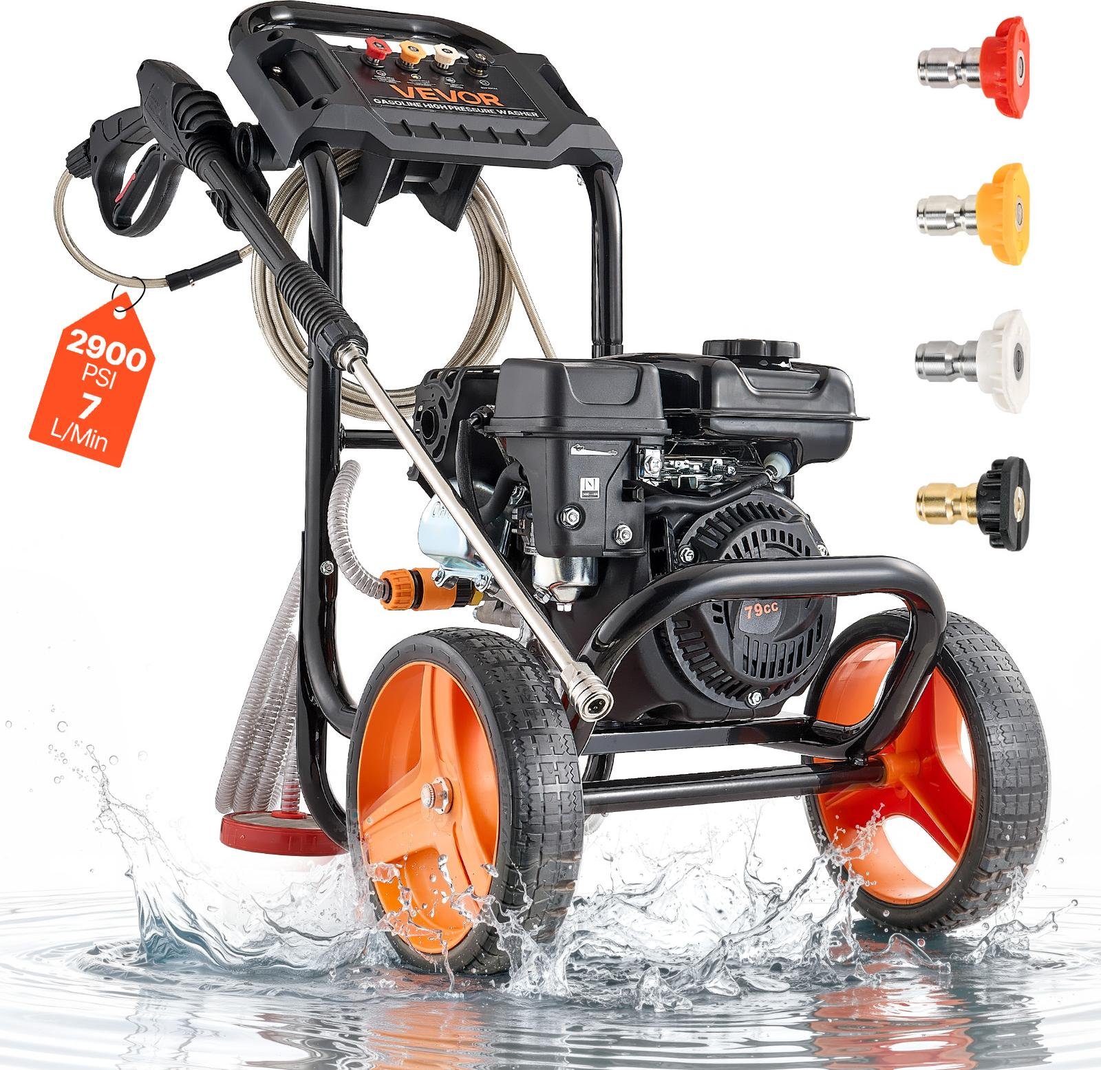 Nettoyeur haute pression à essence VEVOR, 3500 PSI 10 l/min, 2,6 GPM nettoyeur haute pression à gaz , pistolet pulvérisateur et tige de rallonge, set de 5 buses,