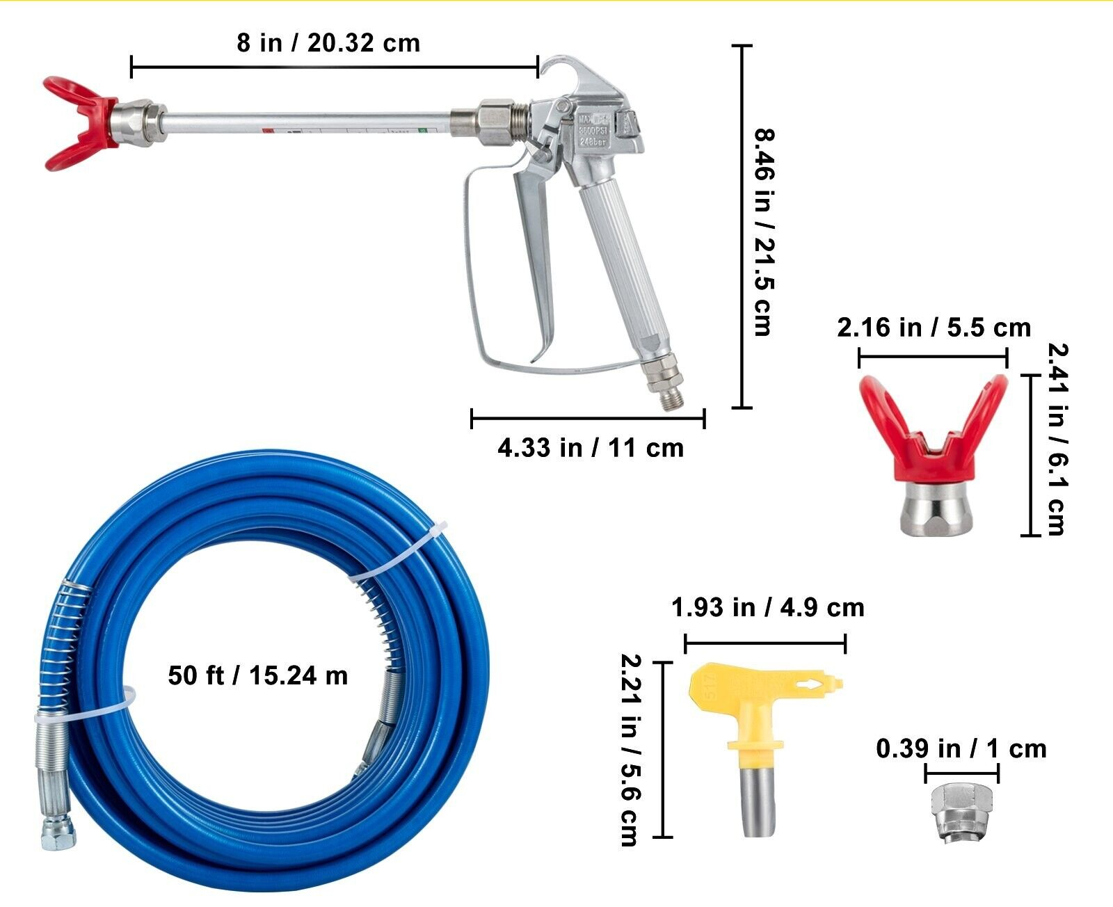 Pistolet + Tuyau Pulvérisateur Pivotant sans Air 15x6,35mm Pression 3600Psi