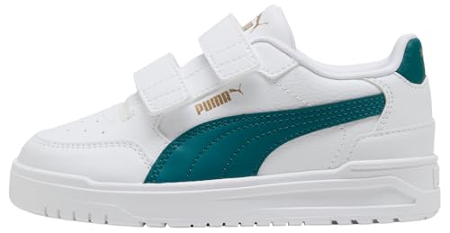 PUMA Shuffle Downtown LO V PS Baskets Blanc/émeraude Ice Gold, Pointure 34 pour Enfant, Puma Blanc émeraude Ice PUMA Gold, 34.5 EU