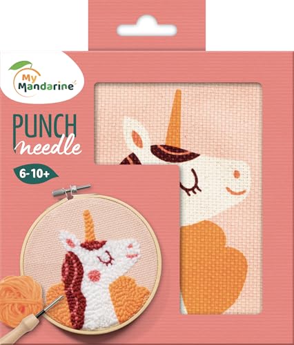 MY MANDARINE KC150C - Un kit Point de croix enfant PUNCH NEEDLE - Tableau 18x18 cm - À partir de 6 ans - LICORNE, Liconre