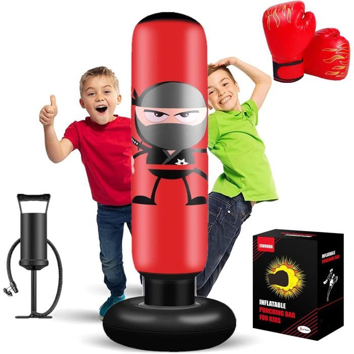 EIVONDA Sac de Boxe Enfant 160cm Gonflable Ninja Sac de Frappe sur Pied Punching Ball avec Pompe à Air pour Pratiquer Le Karaté Taekwondo MMA et Soulager L'énergie Refoulée chez Les Enfants