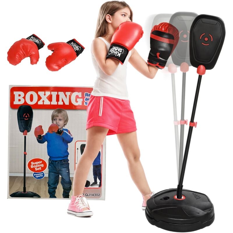 Punching Ball Enfant - Hauteur Réglable - Avec Gants et Pompe - Rouge - Mixte