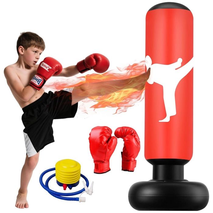 Zourglow Sac de Frappe Enfant, 160 cm Gonflable Sac de Boxe Enfant avec Pompe, Cadeau pour Garçons et Filles de 3 à 12 Ans, Punching Ball Enfants pour Boxe, Karaté, Taekwondo