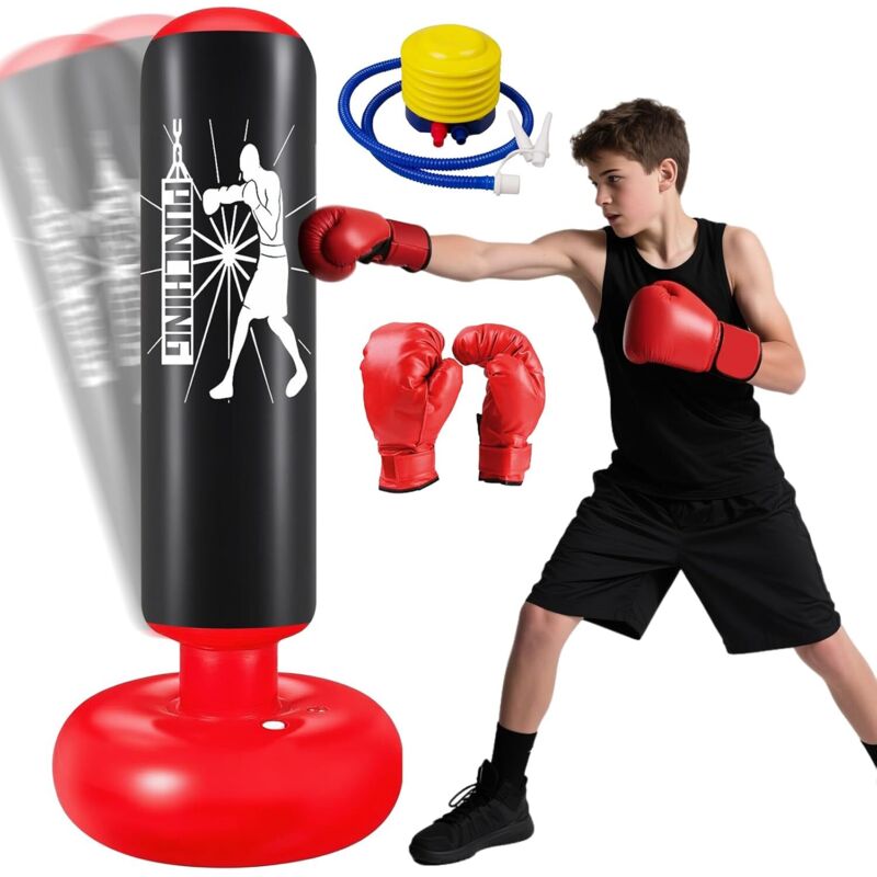 Punchy® Punching Ball Gonflable Enfant 160x55 cm | Sac de Frappe avec Gants & Gonfleur | Jouet Fille Garçon dès 5 Ans | Sac de Boxe pour se Défouler à la Maison ou dans Le Jardin | Aerobik®