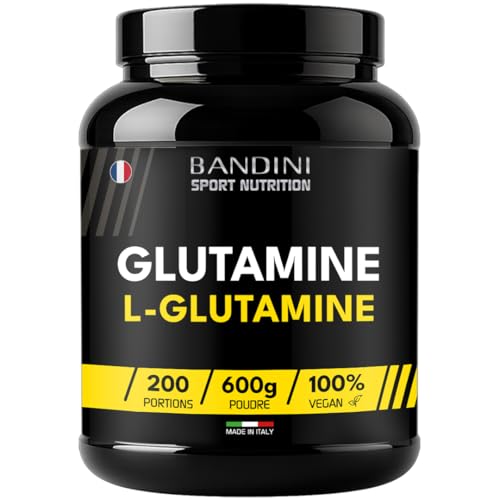 Bandini® Pure L-Glutamine en poudre 600g, Acide aminé essentiel hautement dosé au Goût neutre, Pour Gym et Sport de Haute Intensité, Glutamine powder 100% végétalien et sans additifs, 200 portions