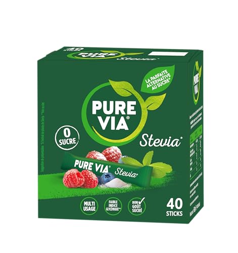 PURE VIA - Boîte 40 sticks - Stevia Poudre - Zéro Calorie