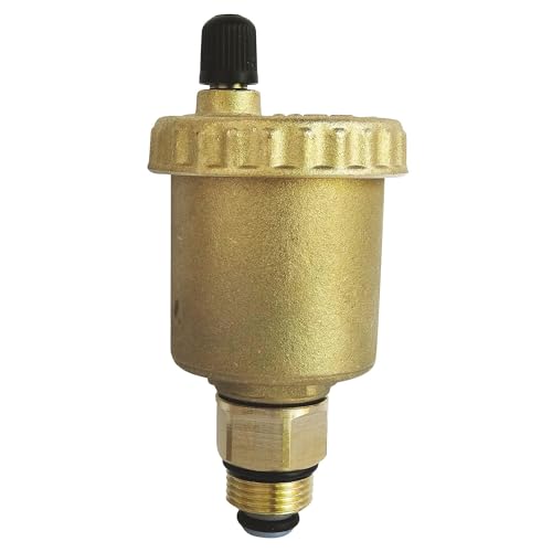 SOMATHERM FOR YOU, Purgeur d'air automatique M12/17 en laiton brossé, sortie verticale, max 110°C, 10 bars, avec valve d'isolement pour un remplacement facile, idéal chauffage