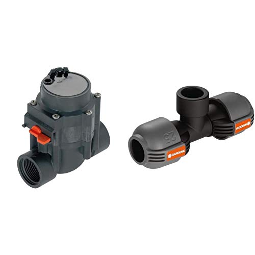 Gardena Electrovanne 24 V, Noir, 20 x 20 x 15 cm & Dérivation en T Femelle : Raccord pour Purgeur Automatique, Filetage Femelle 25 mm X 3/4", Technologie de Raccordement
