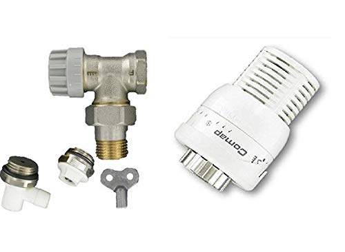 COMAP Kit Complet Robinet et Tête thermostatique Senso 1 et accessoires (raccord de réglage, purgeur, robinet de vidange) pour radiateur - M28 - équerre 1/2" ou 15/21 - S630682