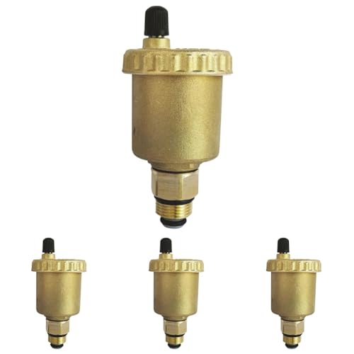 SOMATHERM FOR YOU, Purgeur d'air automatique M12/17 en laiton brossé, sortie verticale, max 110°C, 10 bars, avec valve d'isolement pour un remplacement facile, idéal chauffage (Lot de 4)