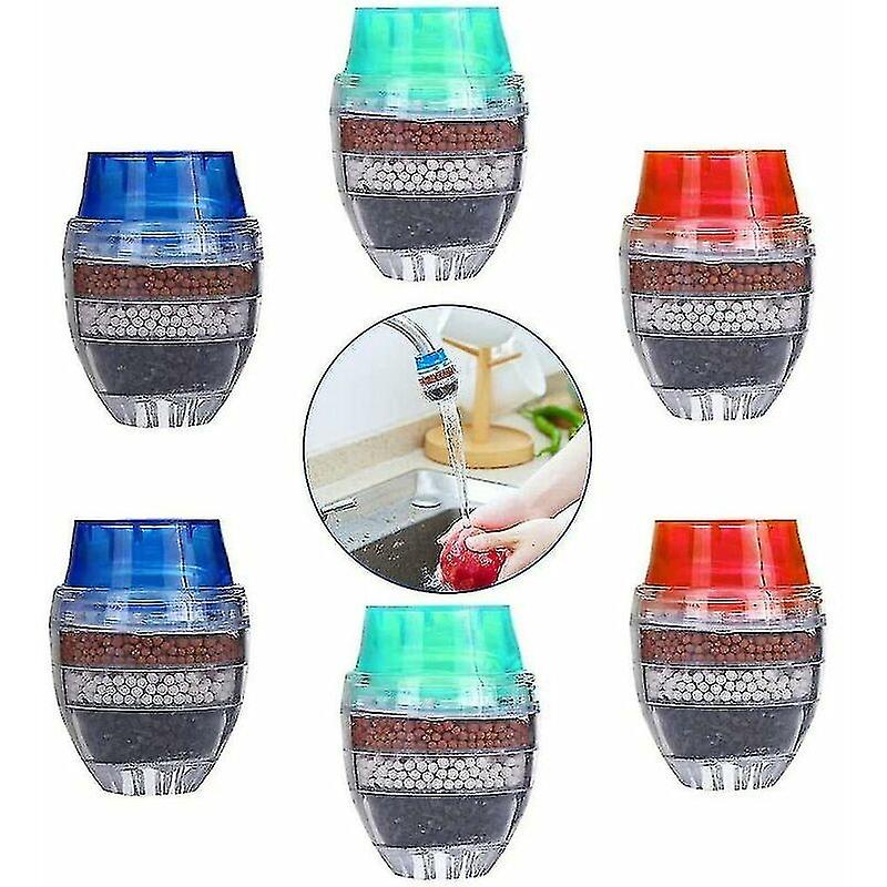 Lot de 6 filtres à charbon actif pour robinet de cuisine rond, purificateur d'eau à 5 couches, robinet purifié pour la maison