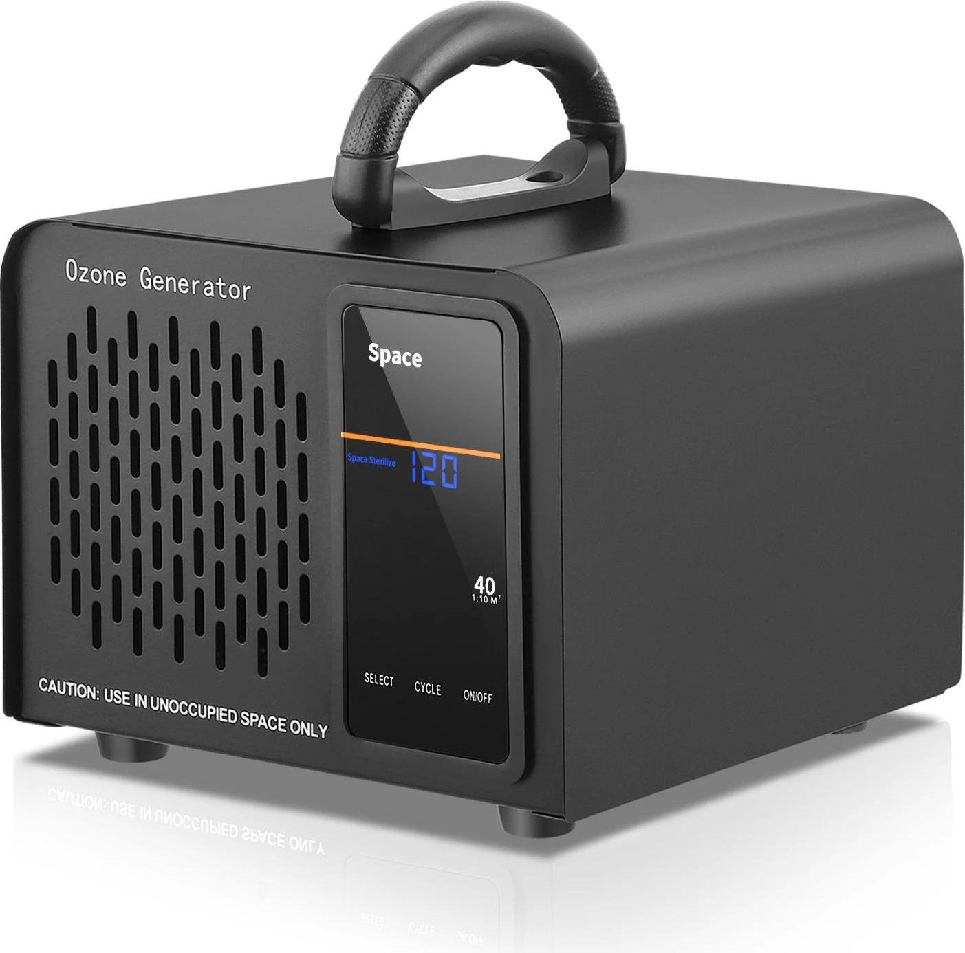 Purificateur d'air générateur d'ozone - Ozoniseur industriel - 60 000 mg/h - Minuterie 120 min - Écran tactile - Jusqu'à 400 m² - Pour la voiture, la maison, les animaux domestiques - Noir
