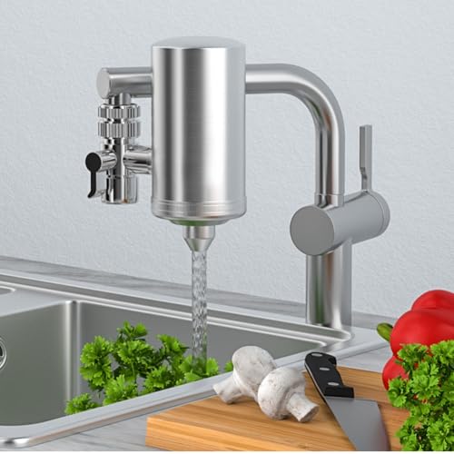 ARMYJY Filtre purificateur d'eau en acier inoxydable pour robinet – 304 de qualité alimentaire, filtration multicouche, élimination du calcaire jusqu'à 90 %, fenêtre de visualisation claire, lavable